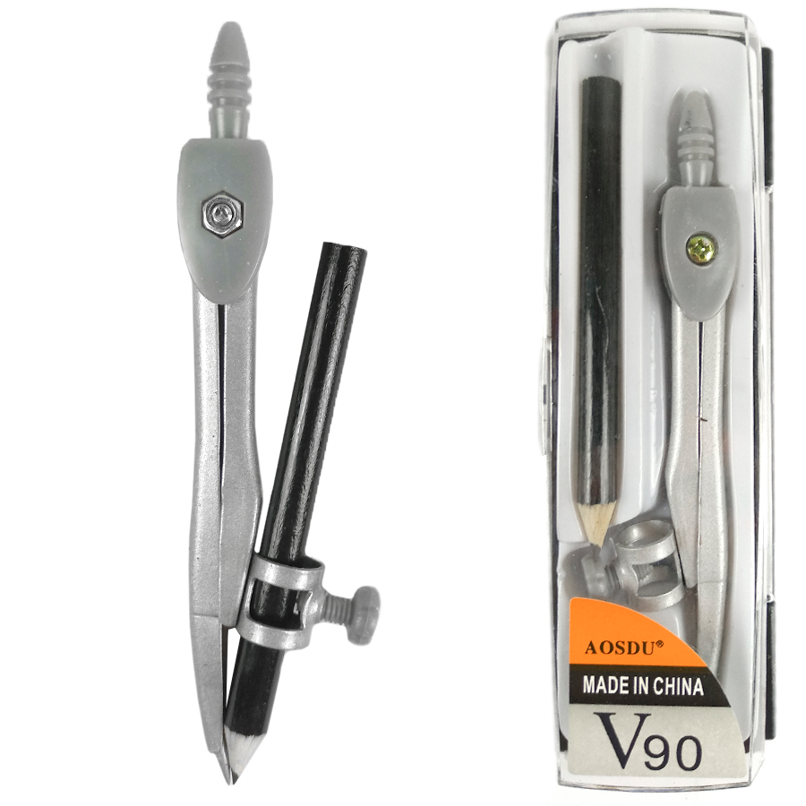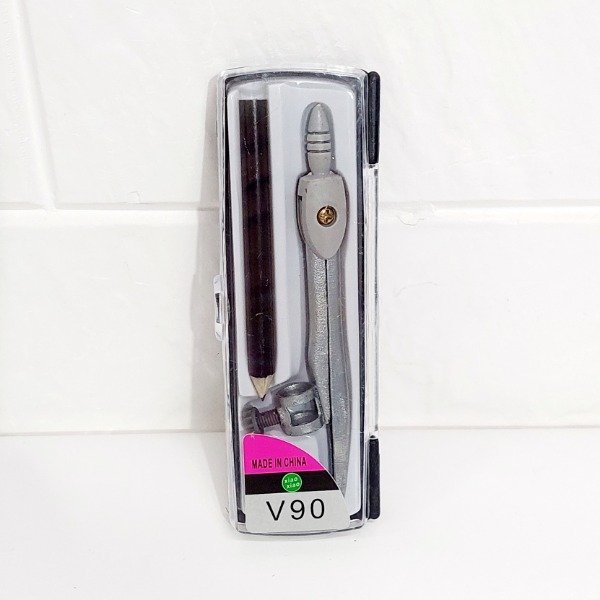 Compas Metalico ” V90 ” P/ LAPIZ c/ Estuche Rigido