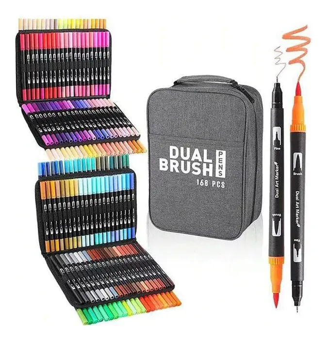 Los Marcadores Dual Brush Doble Punta X 168 son la herramienta ideal para artistas, estudiantes y aficionados al arte que buscan versatilidad y calidad en sus proyectos creativos.